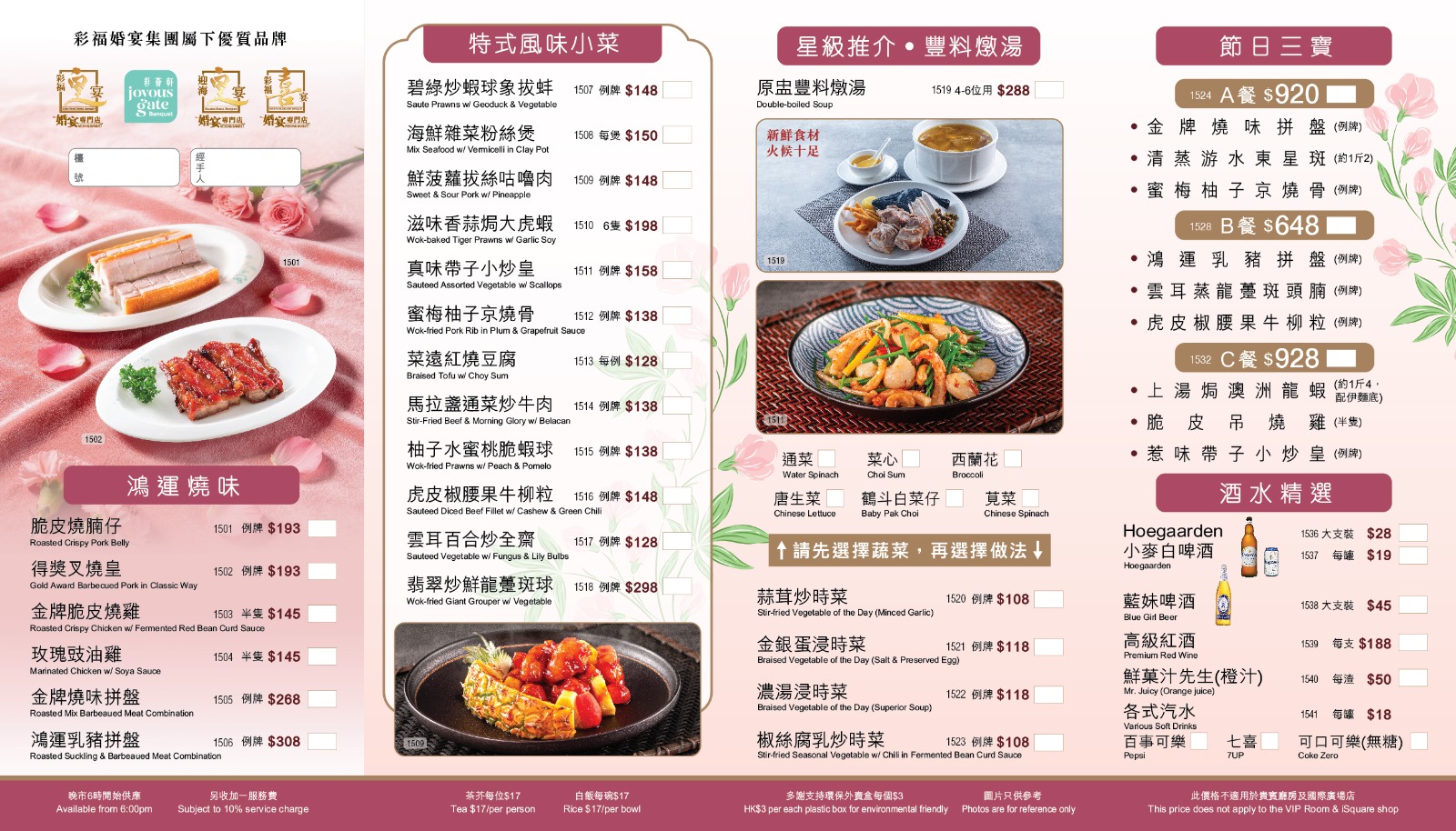 富貴吉祥宴現己上市 , 歡迎致電向分店查詢及訂座。 **已於2026年3月27日起供應** 敬請留意: 尖沙咀國際iSquare分店套餐價錢略有不同