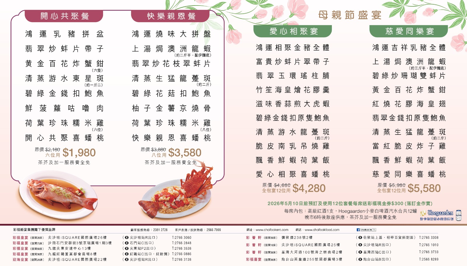 母親節期間推出母親節菜單,於5月1、2、3、8、9、10日晚市供應。