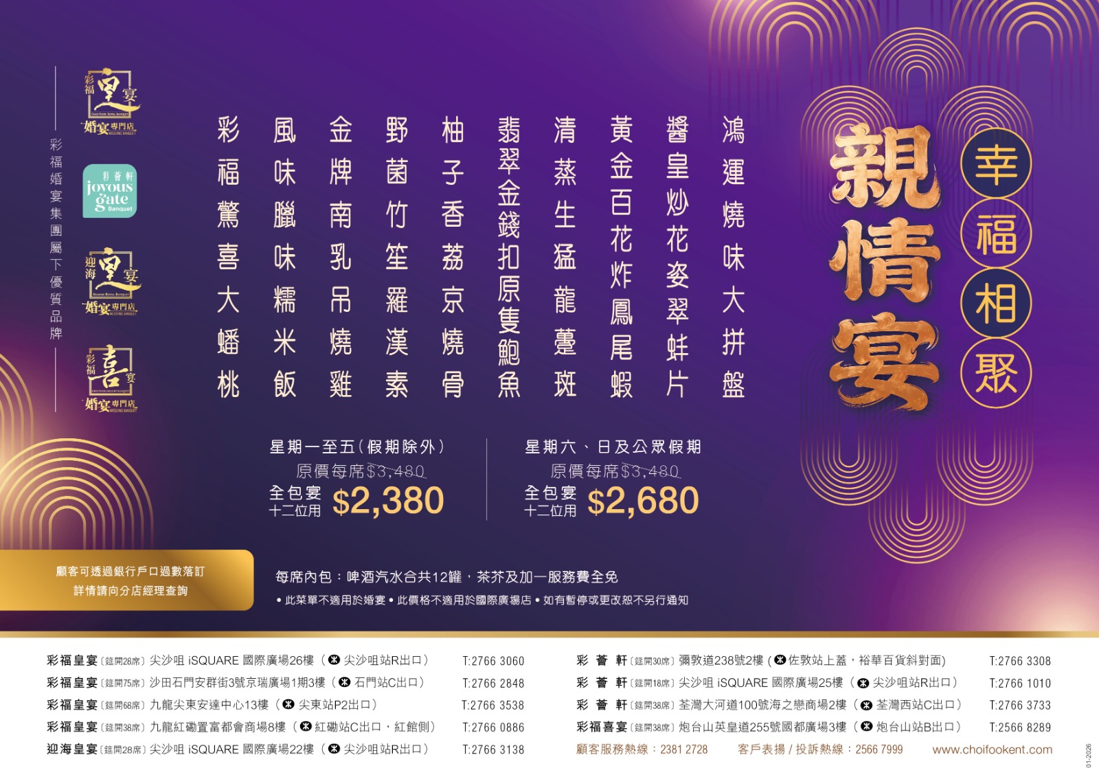 幸福相聚親情宴現已上市,詳情請向各分店查詢。
