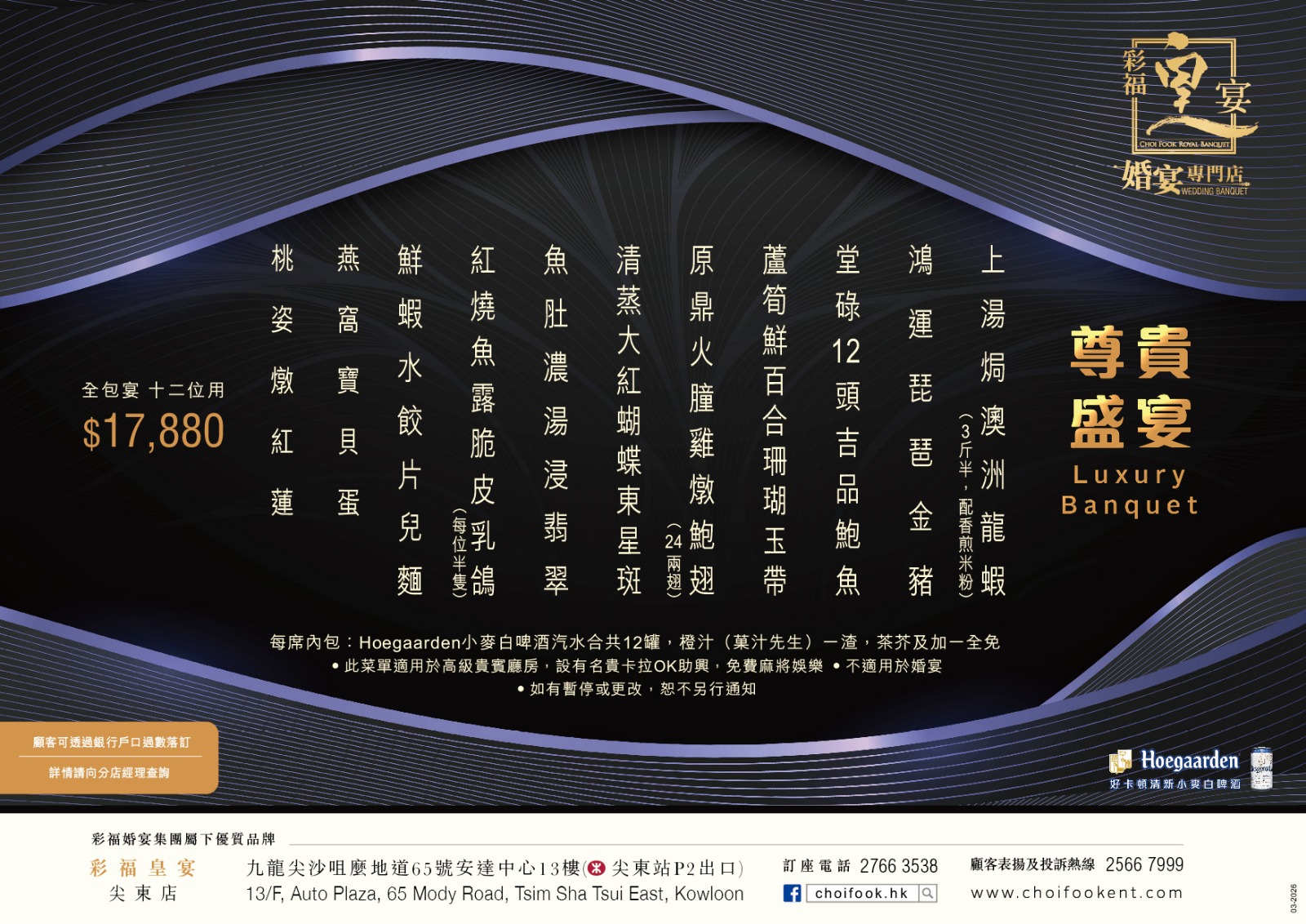 名貴大方宴現己上市,歡迎與各分店查詢及預約訂座。 **己於2026年3月27日起供應** 備註:iSQUARE國際廣場套餐價錢略有不同